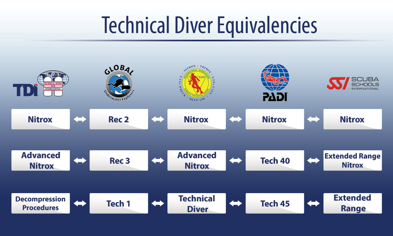 | TDI | GUE | IANTD | NSS-CDS | NACD | CDAA |