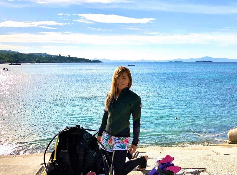 過去にサーカスに勤めていた折に沖縄に来て仲間と体験ダイビングをした事がキッカケで、ダイビングと海の魅力に取り憑かれました。以降、静岡県伊豆のダイビングショップでアルバイトをしながらダイブマスターを取得し、本格的にプロになりたいと沖縄でインストラクターを取得しました。