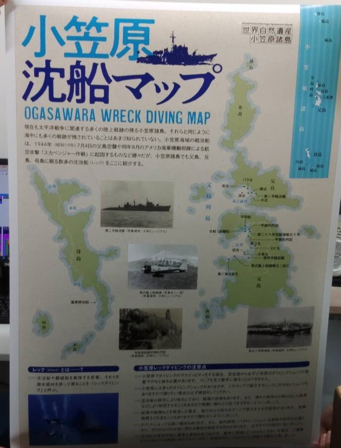 このたび、プロジェクトTシャツの売り上げをもとに、小笠原の海中に眠るレックの解説を含めたマップを作成いたしました。