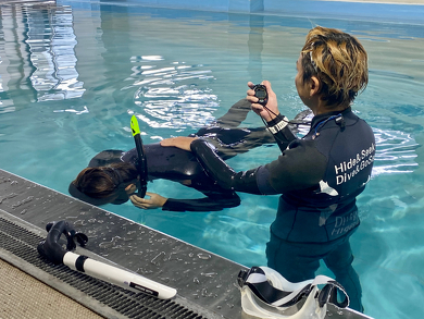 ゴールはスキンダイビング、フリーダイビングの境界を安全に教えられるようになることです。