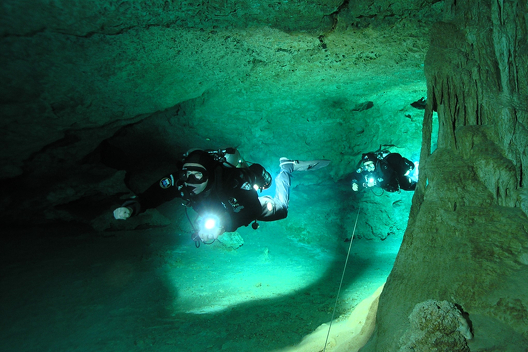 安全を確保するために、テクニカルダイビングやケイブダイビングでは、高度な個人スキル、知識、チームワークが必要です。 トレーニングとダイビングでは、これらを大切にしています。
