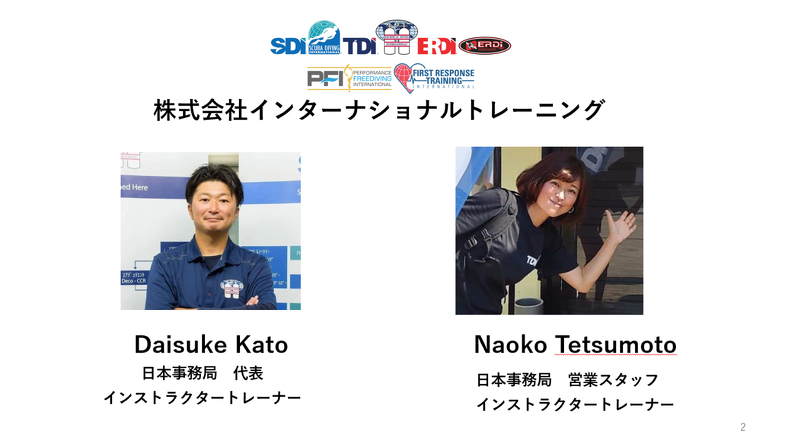 注:追加トレーニングが必要な場合、指導料1時間¥1000~/指導者の交通費やダイビング経費等が発生します。