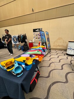 出展者様、中部の事業者様・ダイバー様と最先端のダイビング器材に触れながら、