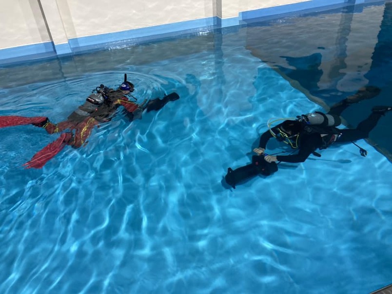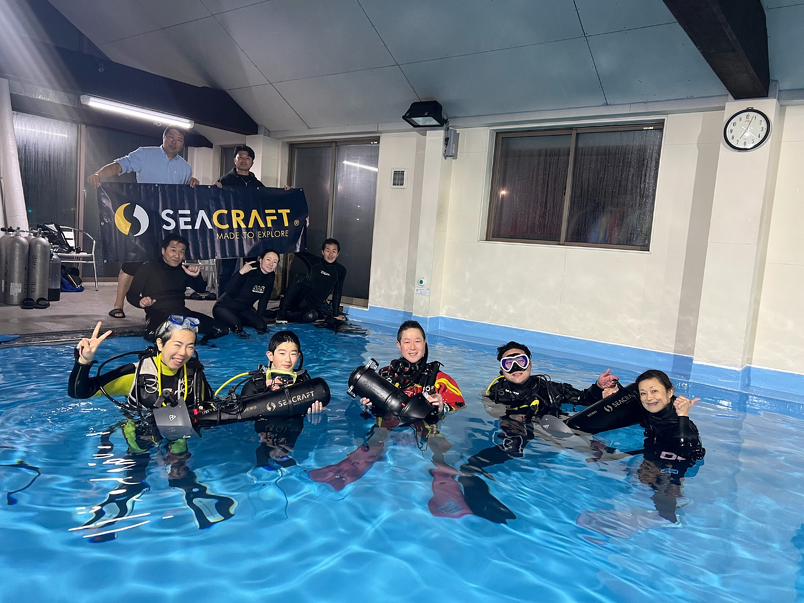 プール会場では、ポーランド製の高級な水中スクーター3台の試乗会がありました!