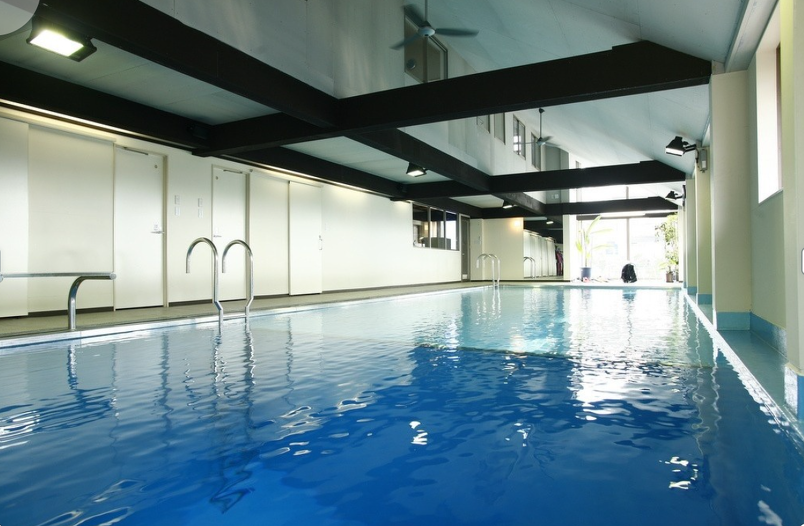 *水温27度の温水プールです。水中ミラーにより、器材コンフィギュレーション、フォームのチェックができます。