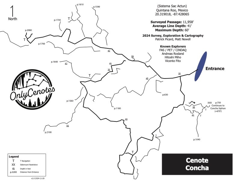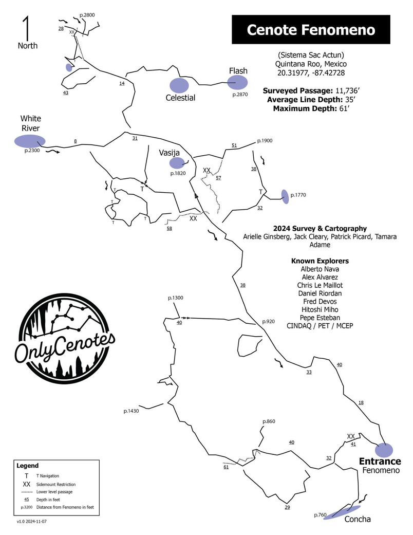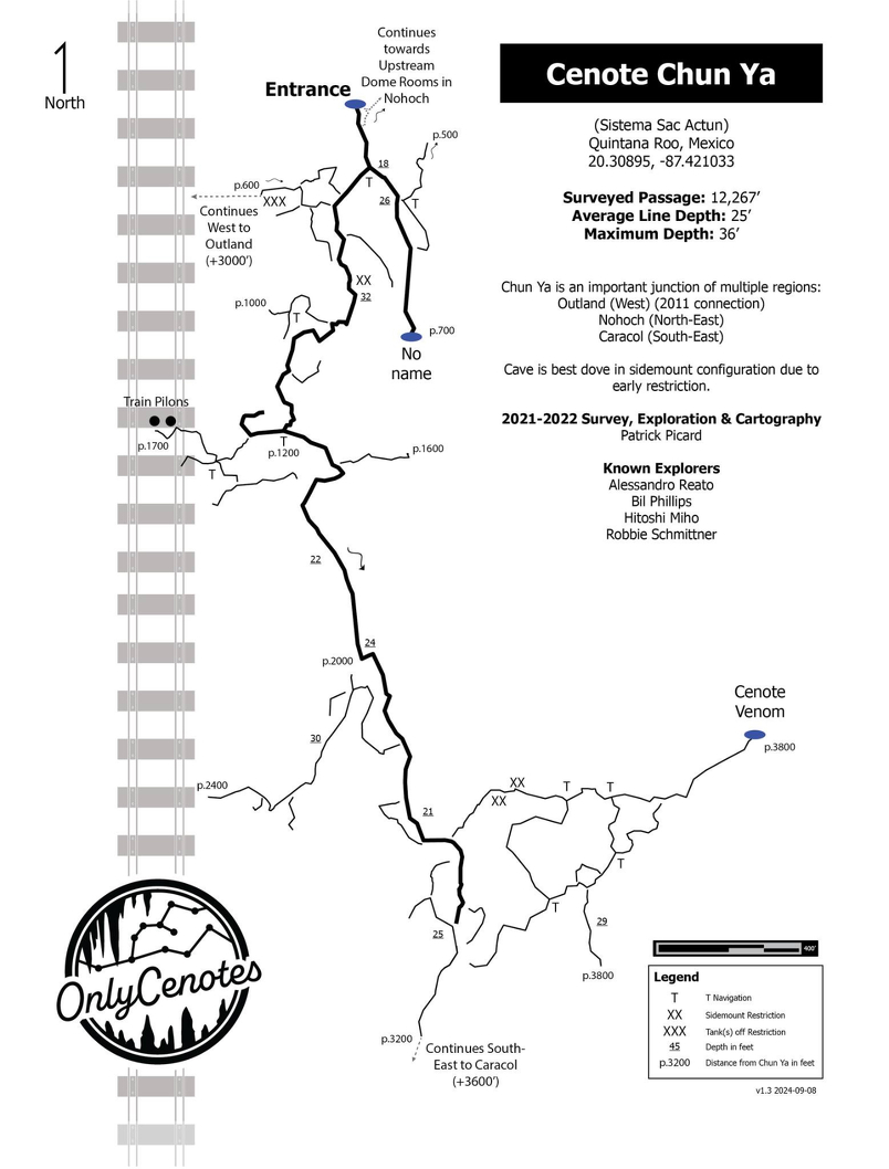 自分がケーブダイビングを始めた頃に、すでにユカタン半島の100以上のセノーテを開拓していた前人達がいます。近所でも、古い物だと1889年のラインなどもあります。ジム・フィリップスは数年前に病死するまで、最も古いケーブダイバーの一人でした。そして、もう30年ぐらいこちらに住んでいる有名なロビー・シュミッターなど、その他にもこちらで潜るケーブダイバーがほとんど全員が知っている人達が、開拓者としてケーブマップに名前が載っていました。