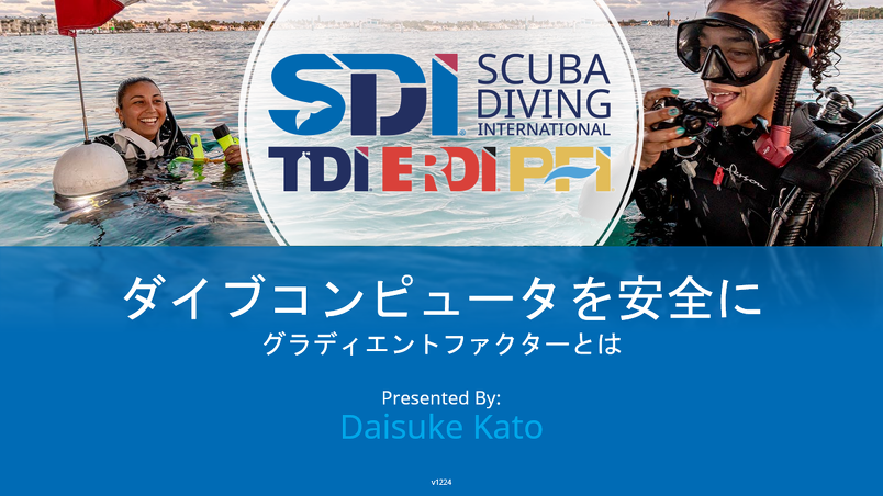 2/1(土)に開催された『第23回潜水医学講座小田原セミナー』にて代表加藤が、『 ダイブコンピュータを賢く使おう GFなどの設定』について講演いたしました。そのデータを掲載いたします。