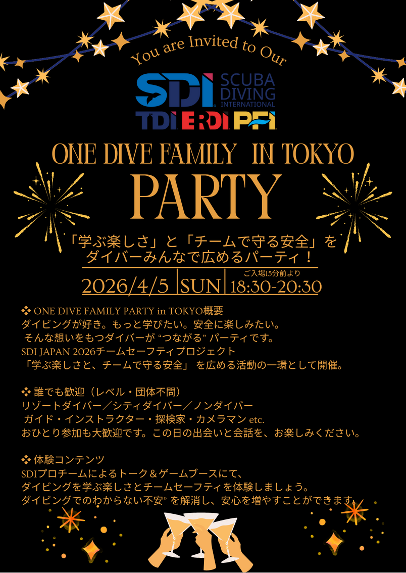 【パーティ】2026年4/5(日) ONE DIVE FAMILY PARTY IN TOKYO 参加予約開始!(先着50名プレゼント付)