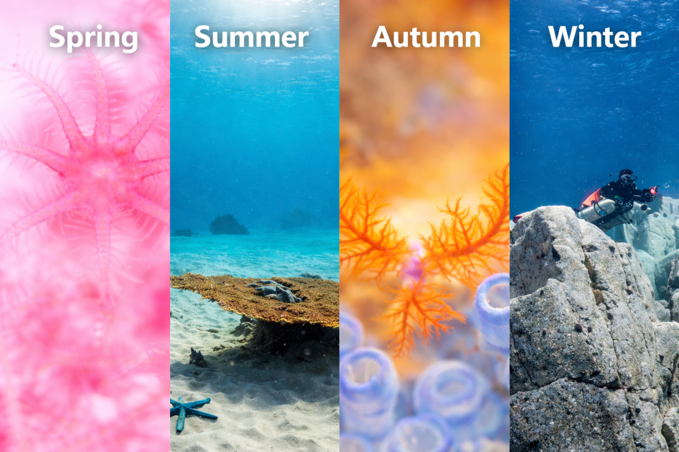 Spring brings new life, summer offers warm waters, autumn provides ideal conditions, and winter delivers exceptional visibility.