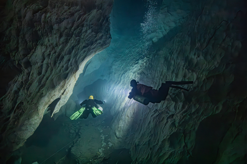 A base for underwater cave exploration and technical diving, actively committed to cave conservation.