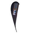 素材は、トリコット。ポリエステル100%の素材で、軽くて硬めの生地です。大型旗で最も多く用いられる化繊素材です。折り畳み式のポールは収納袋もついていてイベントへの持ち出しやすいです。